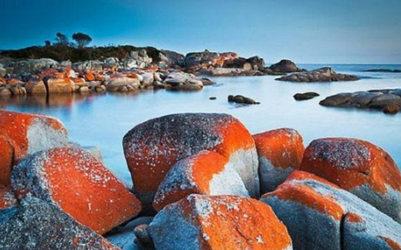 يقع شاطئ النار على الساحل الشرقي من ولاية تسمانيا، ويرجع سبب تسميته بهذا الاسم إلى وجود العديد من الصخور الجرانيت الملونة ذات اللون البرتقالي الزاهي على الشاطئ التي تشبه النار المشتعلة بجانب مياهه الزرقاء الصافية ما يعطي تأثيرا بانوراميا مذهلا.
