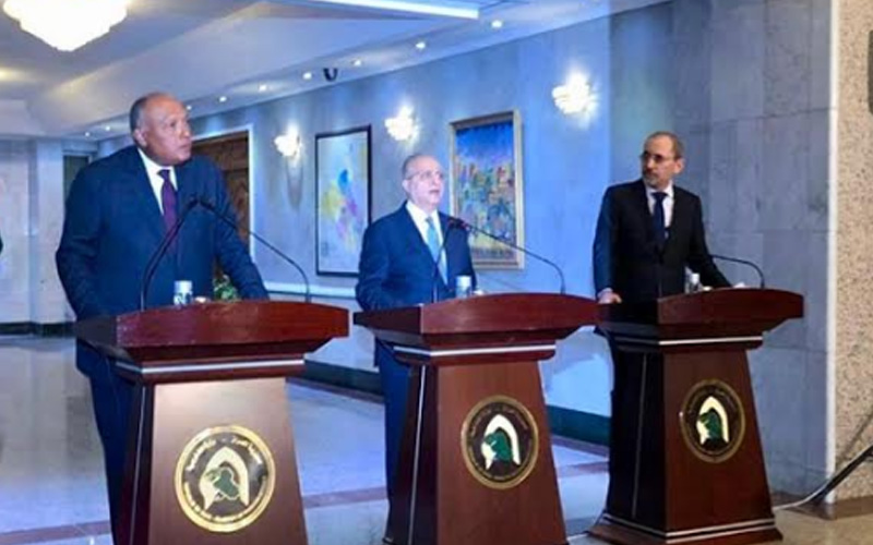 عُقد في بغداد اليوم الأحد بتاريخ 4 اغسطس 2019، اجتماع ثلاثي ضم كل من معالي وزير خارجية جمهورية العراق السيد محمد علي الحكيم ومعالي وزير خارجية جمهورية مصر العربية السيد سامح شكري ومعالي وزير خارجية المملكة الأردنية الهاشمية السيد ايمن الصفدي، لتعزيز التعاون بين الدول الثلاث في مختلف المجالات، تنفيذاً لمقررات القمة الثلاثية التي عقدت في القاهرة بتاريخ 24 اذار 2019، بين كل من عاهل المملكة الاردنية الهاشمية جلالة الملك عبد الله الثاني وفخامــة رئيس جمهورية مصر العربية السيد عبد الفتاح السيسي ودولة رئيس وزراء جمهورية العراق السيد عادل عبد المهدي لبحث سبل التعاون والتنسيق والتكامل بين الدول الثلاث.