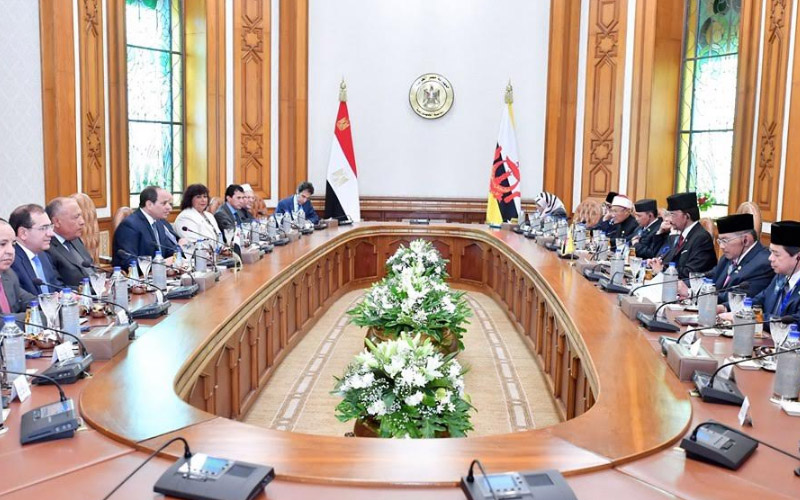 وأعرب الرئيس عن التطلع لتطوير التعاون الثنائي مع بروناي في مختلف المجالات، لا سيما الدينية والسياحية والثقافية والاقتصادية، فضلاً عن الاهتمام بجذب المزيد من الاستثمارات البروناوية استغلالاً للفرص الاستثمارية الواعدة المتوفرة حالياً في مصر في مختلف القطاعات، بالإضافة إلى تعزيز التنسيق والتشاور المتبادل سياسياً إزاء مختلف القضايا الإقليمية والموضوعات ذات الاهتمام المشترك، وعلى رأسها مكافحة الإرهاب والفكر المتطرف.