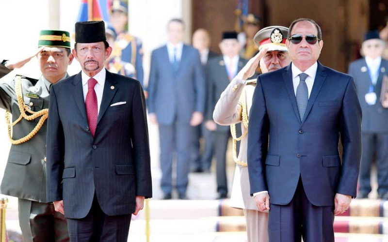 استقبل الرئيس عبد الفتاح السيسي اليوم بقصر الاتحادية السلطان حسن بلقيه، سلطان بروناي، حيث تم إجراء مراسم الاستقبال الرسمي وعزف السلامين الوطنيين واستعراض حرس الشرف.