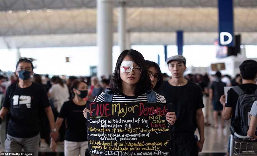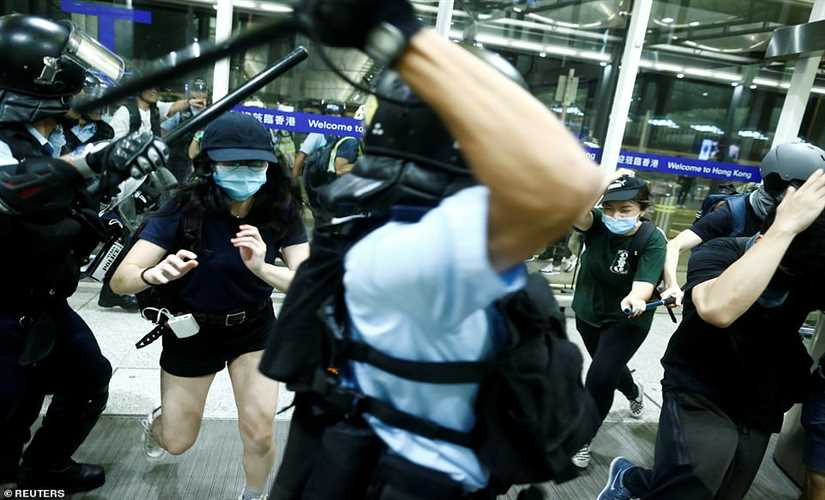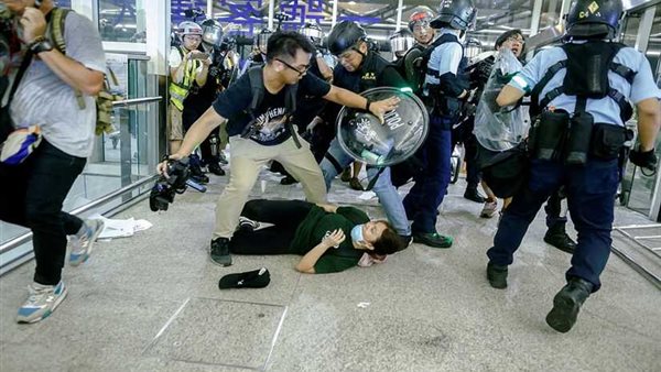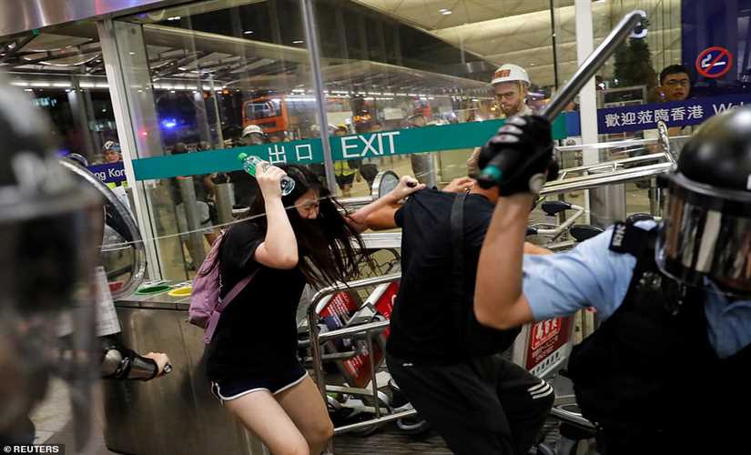 واستخدم الضباط رذاذ الفلفل والهراوات ضد المتظاهرين، الذين استخدموا عربات الأمتعة لتقييد مداخل محطة المطار، حيث يقول خبراء قانونيون: إن الرئيس الصيني شي جين بينج ربما يمهد الطريق لاستخدام قوانين مكافحة الإرهاب لمحاولة سحق المظاهرات.