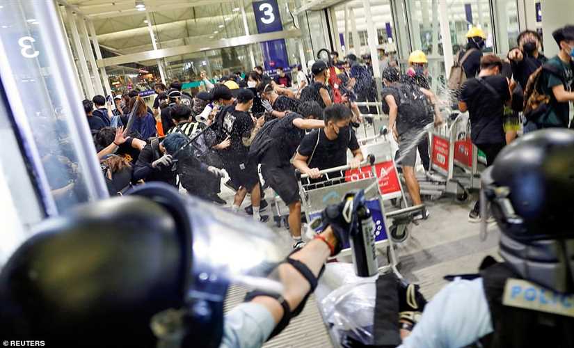 اقتحمت شرطة مكافحة الشغب مطار هونج كونج منذ قليل، واشتبكت مع المتظاهرين بعد تعطل حركة المسافرين لمدة يومين متتاليين.