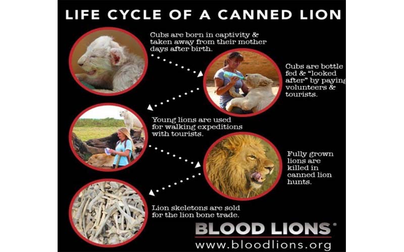 ويقول نشطاء أنه عندما بدأت هذه الممارسة في عام 2008، جاءت العظام من الأسود التي تم تربيتها ثم قتلت بالرصاص في الصيد المعلب. كانت السوق الرئيسية في الولايات المتحدة، لكن هذا قد انخفض بشكل كبير في السنوات الأخيرة بعد أن منعت واشنطن فعليًا استيراد المواد التذكارية.
