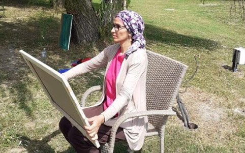 وأضافت أسماء: في أول لقاء بصري تعانقت عيني مع الطبيعة بجمالها، وتعددت درجاتها اللونية الناصعة المتعانقة، مع نهر "تمرين" ومنازلها البسيطة ذات الطابقين والتي استلهمت منها روح المكان في تجربتي The Home والتي احتوت على السكن الروحي والنفسي، فمن أول لقاء تداعيت على مسطح الرسم في لونها الحامل للشفافية بشكل درامي، وفي بناء المشهد معتمدة على لون واحد للخلفية وعليه تباينت الخطوط في إظهار عناصر المنظر، وذلك في ثلاثة أيام متواصلة من الإبداع، والروح الجماعية، والانتهال من الطبيعة، ثم انتقلنا إلى مدينة كولوني Colony في افتتاح لمعرض العام السابق للسيمبوزيوم، ومنها إلى مدينة Jagodina جودينا، وقدمنا في مركزها الثقافي ورشة عمل للأطفال " كولاج"، حيث تفاعلت الأطفال مع الحدث الفني رغم اختلاف اللغة.