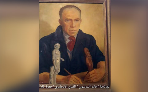 لوحة رسم بالفحم للفنان " برنادررايس".. ولوحة بورترية "جاير اندرسون " للفنان الإنجليزي المتمصر "حمزة كار"