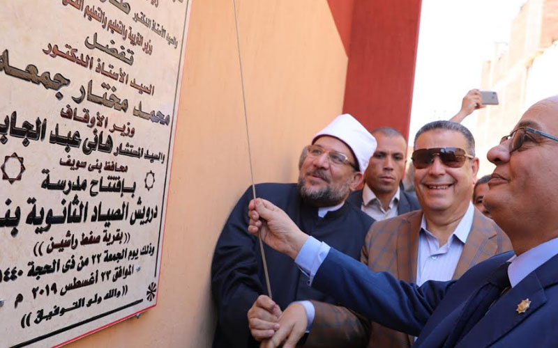 وزير الأوقاف ومحافظ بني سويف يفتتحان مدرسة درويش الصياد الثانوية بصفط راشين