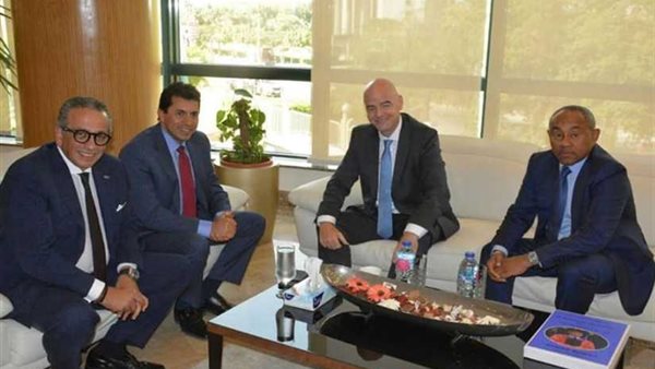بحضور الدكتور أشرف صبحي وزير الشباب والرياضة استقبل اليوم جياني أنفانتينو رئيس الاتحاد الدولي لكرة القدم عمرو الجنايني رئيس اللجنة المكلفة بإدارة الاتحاد المصري لكرة القدم على هامش زيارته الحالية للاتحاد الأفريقي لكرة القدم بالقاهرة .