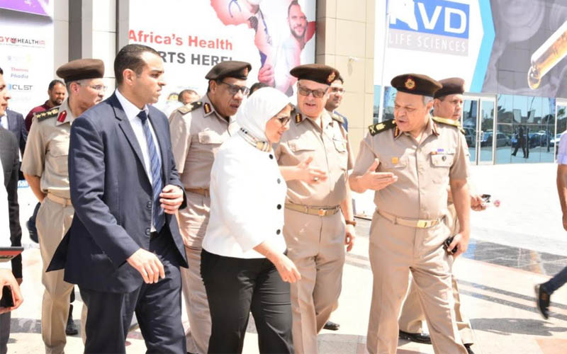 الوزيرة افتتحت المعرض وتفقدت يرافقها الدكتور خالد عبدالغفار وزير التعليم العالي والبحث العلمي ومساعد وزير الدفاع للخدمات الطبية، ومدير الأكاديمية الطبية العسكرية، والأجنحة المختلفة للشركات المصرية والعالمية، والمستشفى الجوي التخصصي، وهيئة الإسعاف المصرية متضمنة سيارة الإخلاء، وهي إحدى سيارات الإسعاف التي تستخدم في حالات العدوى الشديدة، وقام فريق المسعفين بشرح استخداماتها وما تتميز به من سرير إلكتروني يعمل بالدفع دون حمل، بالإضافة إلي جناح مبادرة القضاء على ڤيروس سي والكشف عن الأمراض غير السارية.
