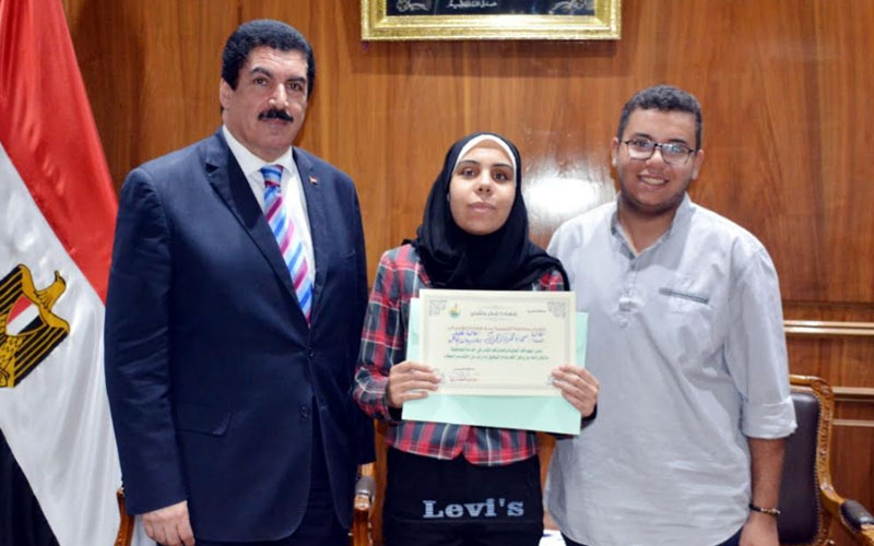 قام الدكتور علاء عبد الحليم، محافظ القليوبية، بتكريم ابنة القليوبية الطالبة الكفيفة المتفوقة " أسماء حمدي أحمد" بركة الطالبة بالسنة الرابعة بكلية الإعلام جامعة القاهرة بمنحها شهادة تقدير وذلك تقديرا لتفوقها العلمي والدراسي فضلا عن تميزها الأخلاقي والذي أهلها للفوز بالمركز الأول في أسبوع شباب الجامعات الثاني لمتحدي الإعاقة والذي عقد بجامعة المنوفية في الفترة من 1 : 6 سبتمبر 2019 .