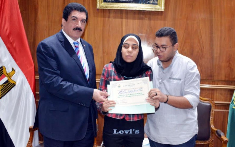 تكريم الطالبة المثالية الأولى على مستوى الجامعات المصرية لمتحدي الإعاقة بالقليوبية