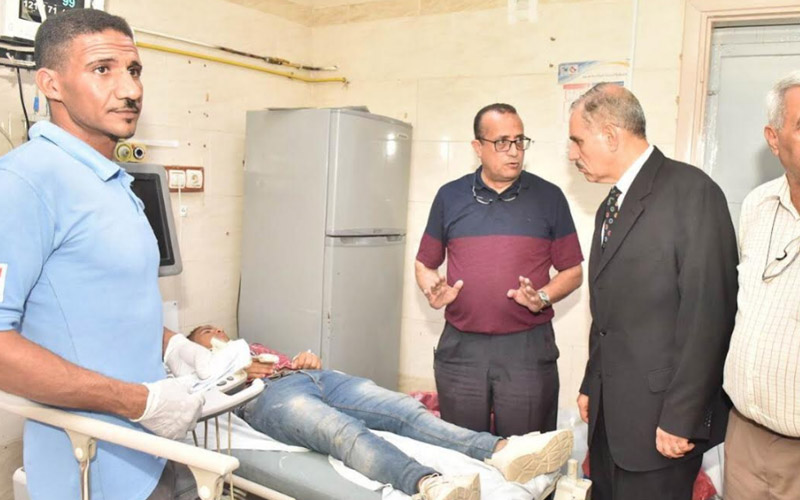 وانتقل المحافظ إلى المستشفى الجامعي للاطمئنان على الحالة الصحية للمصابين ومتابعة الرعاية الطبية المقدمة لهم رافقه خلال الزيارة المهندس عمر عبدالعال نائب المحافظ والدكتور محمد زين وكيل وزارة الصحة وفاطمة الخياط وكيل وزارة التضامن الاجتماعي ومصطفى أبوغدير مستشار المحافظ للشئون الاجتماعية واستمع إلى تقرير عن حالة المصابين موجهًا بتقديم كافة الإسعافات اللازمة والرعاية الطبية العاجلة لهم وعمل الفحوصات والأشعة والتحاليل ووضعهم تحت الملاحظة الدورية لحين تماثلهم للشفاء بشكل كامل وخروجهم من المستشفى متمنيًا لهم الشفاء العاجل كما كلف التضامن الاجتماعي بتقديم مساعدات عاجلة للمصابين وأسرة المتوفية.