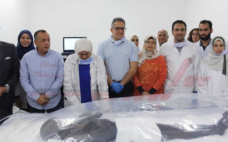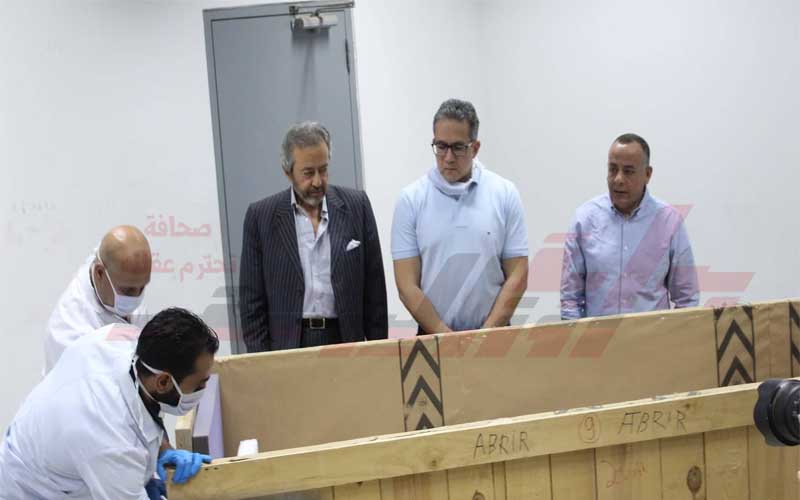 وبعد فك التغليف تم نقل المومياء الخاصة بسنچم إلى معمل الترميم لوضعها في كبسولة التعقيم.