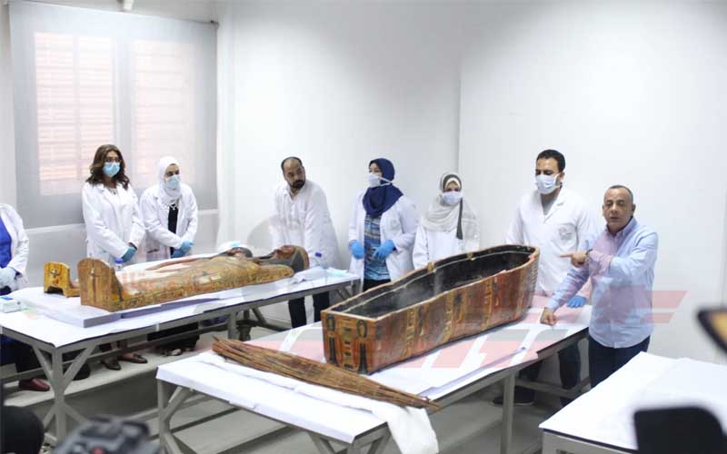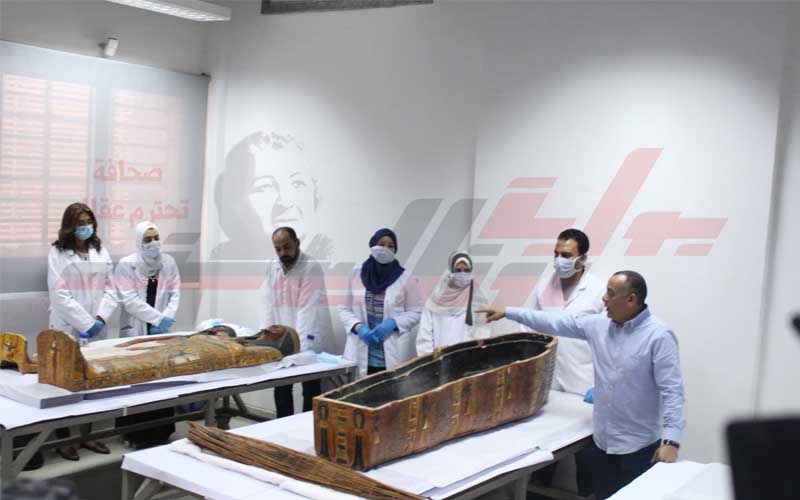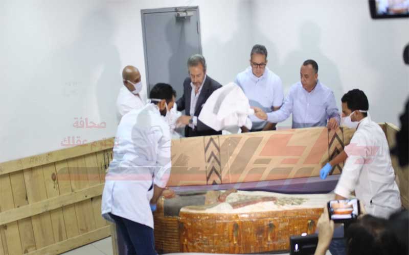 أعمال فك تغليف تابوت رئيس العمال وزوجته في العصر الفرعوني
