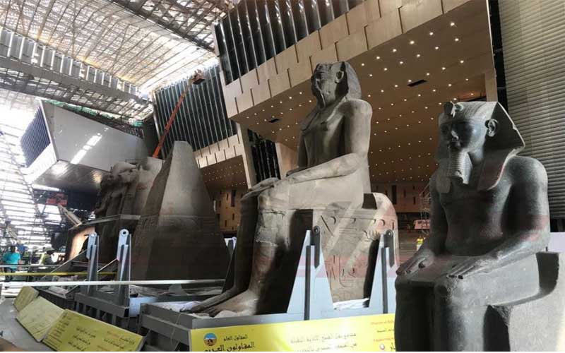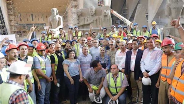على هامش زيارته للمتحف المصري الكبير، تفقد د. خالد العناني وزير الآثار، القطع الأثرية الضخمة، والتي وصلت إلى بهو المتحف أمس قادمة من المتحف المصري بالتحرير. وتعتبر تلك القطع من أضخم القطع، التي سيتم عرضها على الدرج العظيم عند افتتاح المتحف في عام 2020.