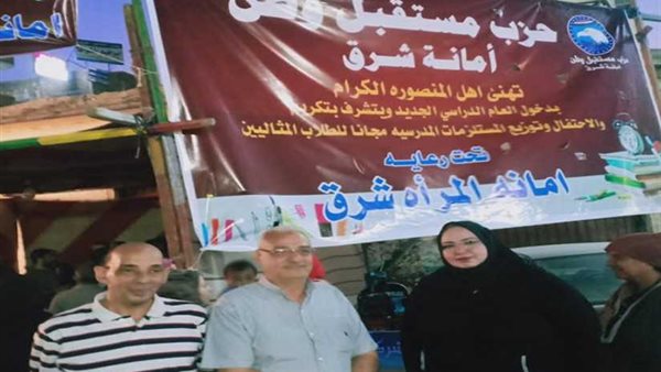 أقام حزب مستقبل وطن، برئاسة المهندس أشرف رشاد الشريف، في محافظة الدقهلية، معرض للأدوات المدرسية والكتابية للمستحقين لدعم الأطفال اليتامى وغيرهم ممن لهم حق الرعاية التعليمية، في شرق المنصورة، تحت رعاية النائب محمد المرشدي أمين الحزب المحافظة، وبحضور النائب نبيل الجمل.