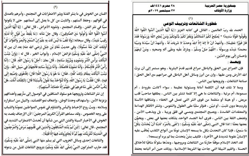 الأوقاف تخصص خطبة الجمعة عن الشائعات وكيف عانى الرسول من المنافقين؟