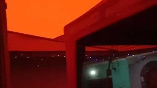 وقال: "يحدث "تناثر رايلي" عندما يتشتت ضوء الشمس عن طريق الدخان أو الغبار أو الجسيمات المحمولة بالهواء التي تقوم بتصفية أطوال موجات أقصر وتطلق أطوال موجية أطول في الطيف البرتقالي أو الأحمر، مما يجعل المنطقة تبدو قاتمة وحمراء."
