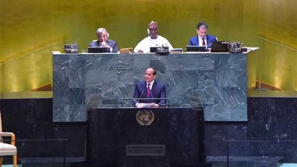 وأضاف الرئيس، خلال كلمته أمام الجمعية العامة للأمم المتحدة، اليوم، أن مصر بصفتها عضوًا مؤسسًا لمنظمة الأمم المتحدة ورئيسًا هذا العام للاتحاد الإفريقي، وعبر دورها في جامعة الدول العربية، تؤكد ضرورة الانطلاق من الحلول الوطنية للتحديات.