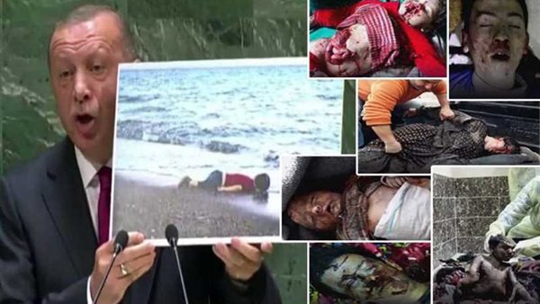 "كبر مقتًا عند الله أن تقولوا ما لا تفعلون".. هذه الآية الكريمة تنطبق تمامًا على أفعال وأقوال الرئيس التركي رجب طيب أردوغان، الذي حاول أن يُظهر تعاطفه الزائف مع السوريين على منصة الأمم المتحدة، عندما أشهر صورة الطفل الكردي الذي عثر على جثته على ضفاف البحر المتوسط منذ أكثر من عامين.