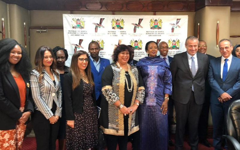 التقت الدكتورة ايناس عبد الدايم وزيرة الثقافة وامينة محمد وزير الرياضة والتراث بدولة كينيا ضمن جدول اعمال المشاركة المصرية الاولى في فعاليات الدورة الـ22 من معرض نيروبي الدولي للكتاب والمقام تحت عنوان "قراءة.. تطبيق.. حرية" في الفترة من 26 حتى 29 سبتمبر الجاري وذلك بحضور خالد الابيض سفير مصر في كينيا والدكتور هيثم الحاج رئيس الهيئة المصرية العامة للكتاب .