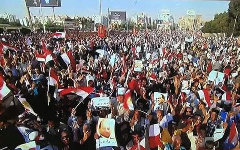 واحتشد مئات الألاف من المؤيدين للرئيس هاتفين تحيا مصر، بمحافظات الدلتا وصعيد مصر، رافضين دعاوى التخريب والفوضى، لتتجاوز الأعداد في ربوع. مصر بضعة ملايين، خرجوا بدعوات شعبية تلقائية يحركهم الحرص على الوطن، والرغبة في مواصلة مسيرة التنمية والتعمير، للنهوض بالدولة المصرية.