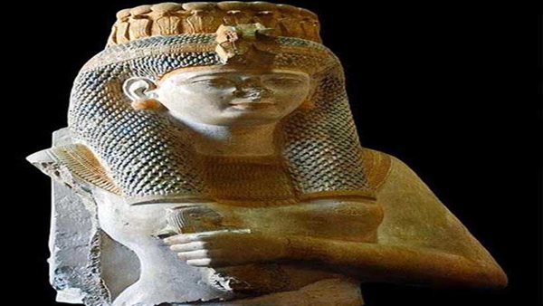 تمثال للملكة ميريت آمون في عرض خاص بمدخل المتحف المصري بالتحرير