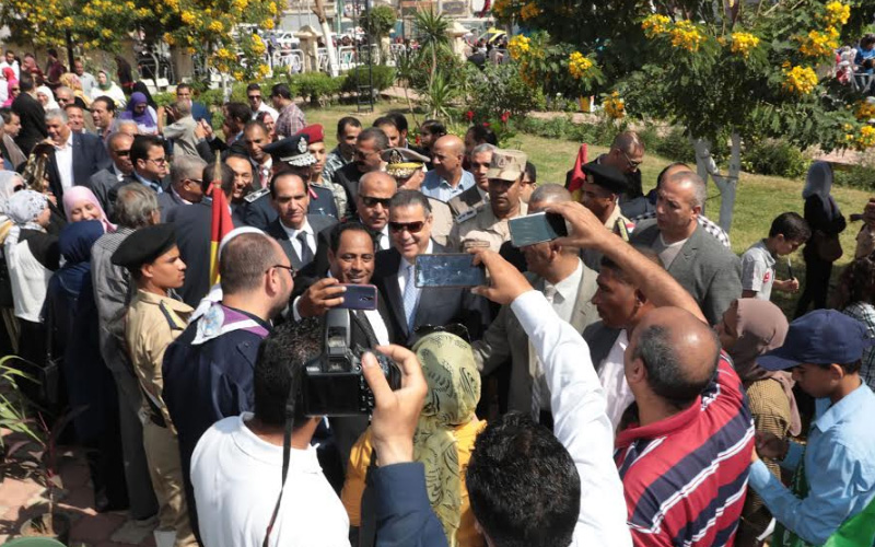 تجول المحافظ ترافقه القيادات العسكرية والأمنية والتنفيذية والسياسية بميدان المديرية، حيث اصطف الطلاب والتلاميذ من 52 مدرسة، وحشد من المواطنين الذين التقط معهم المحافظ الصور التذكارية والسيلفي، وشاركهم فرحتهم بهذه الذكرى العظيمة، وسط الأغاني والنداءات الوطنية مثل أغنية قالوا إيه علينا دولا قالوا إيه.. والشعب والجيش والشرطة إيد واحدة، وتحيا مصر