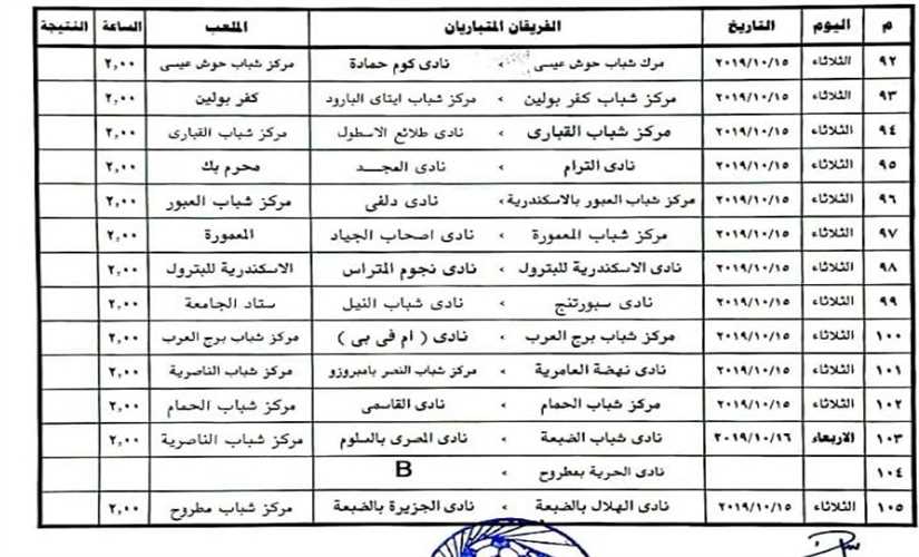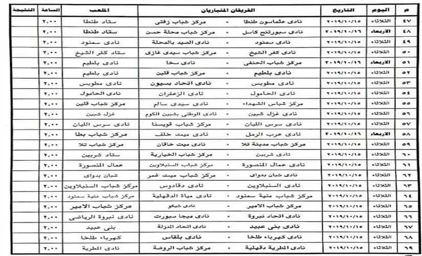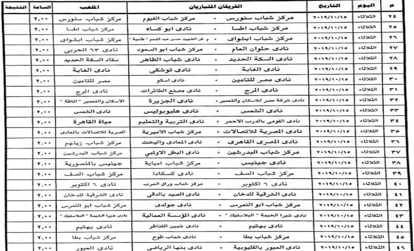 جدول مباريات الأدوار المؤهلة للاشتراك في بطولة كأس مصر