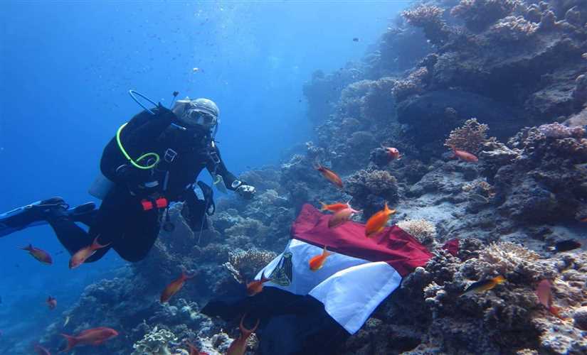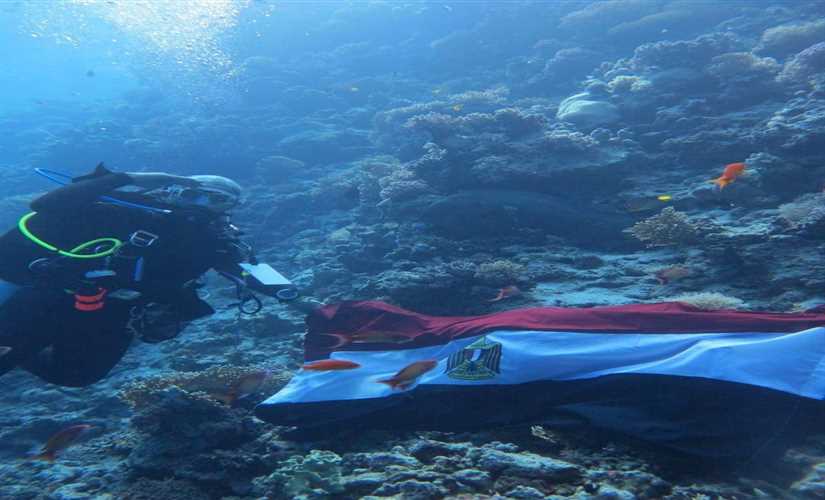 غواصون يحتفلون بنصر أكتوبر من أعماق البحر الأحمر