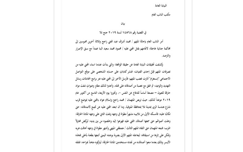عاجل.. إحالة المتهمين بقتل "شهيد الشهامة" للمحاكمة