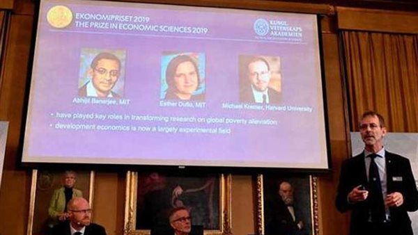 فاز العالم الأمريكي ، من أصل هندي - أبهيجيت بانيرجي والاقتصادية الفرنسية الأمريكية إستير دوفلو والاقتصادي الأمريكي مايكل كريمر اليوم الاثنين بجائزة نوبل للعلوم الاقتصادية عن عام 2019.