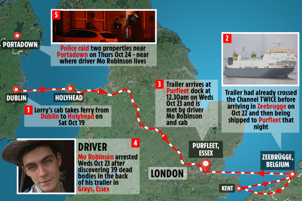 تكتشف معلومات جديدة واقعة العثور على 39 جثة في حاوية شاحنة على بعد 32كيلومترا من وسط العاصمة البريطانية لندن صباح أمس الأول الأربعاء، حيث تبين أن عصابات إجرامية في الصين تقف وراء عملية تهريب الضحايا الذين وضعوا داخل وحدة تبريد في رحلة الموت.