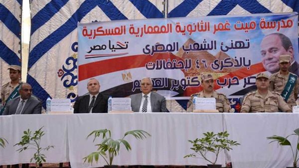 شهد الدكتور كمال شاروبيم، محافظ الدقهلية، اليوم الإثنين، الاحتفال بانتصارات اكتوبر بمدرسة ميت غمر الثانوية المعمارية العسكرية، بحضور النائب أسامة راضي، عضو مجلس النواب، والمهندس علي عبدالرؤوف، وكيل وزارة التربية والتعليم، والمقدم تامر العوضي، المستشار العسكري للمحافظة، والعميد عمرو فكري، رئيس مركز ومدينة ميت غمر، والمقدم محمد سامي، نائبا عن قائد قوات الدفاع الشعبي والعسكري.