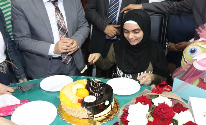 من جانبها، وجهت الطالبة أية نصر الشكر لفضيلة الإمام الأكبر الدكتور أحمد الطيب، شيخ الأزهر، والدكتور محمد المحرصاوي، رئيس الجامعة، والدكتور مصطفى عبدالغني، عميد الكلية، وأسرة كلية طب الأسنان بنات جامعة الأزهر بالقاهرة على رعايتهم لها وعنايتهم بها منذ وقوع حادث القطار الذى تعرضت له منذ عدة أشهر.