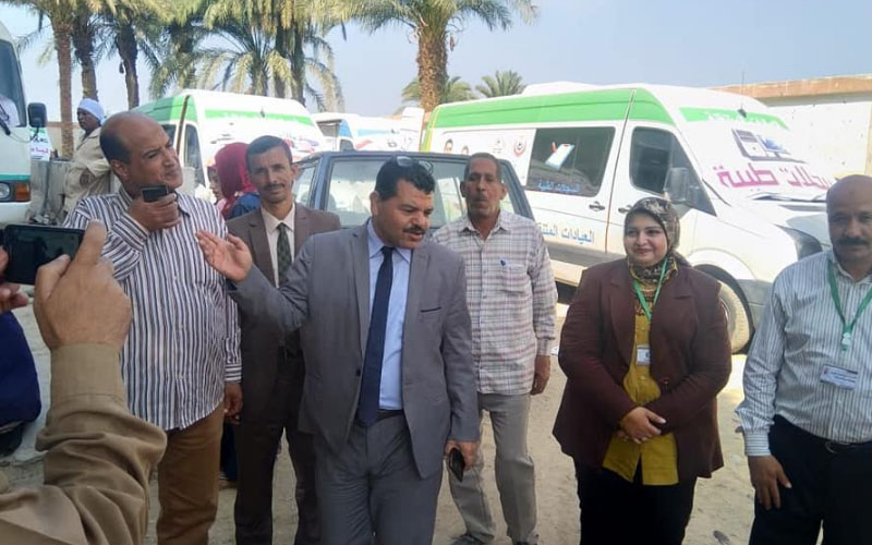 القافلة بإشراف الدكتور عبد الناصر حميدة وكيل وزارة الصحة و ضمت 11 عيادة 9 تخصصات مختلفة وأجرت 90 معمل دم ، 20 معمل طفيليات ،21 حالات الأشعة ، 16 قرار علاج نفقة دولة