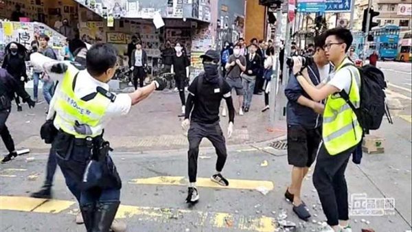 قام متظاهر ملثم في هونج كونج بالهجوم على ضابط شرطة يحمل مسدسًا ما أضطر الأخير لإطلاق النار ضد المهاجم.. وفقا لما أوردته صحيفة "مترو" البريطانية.