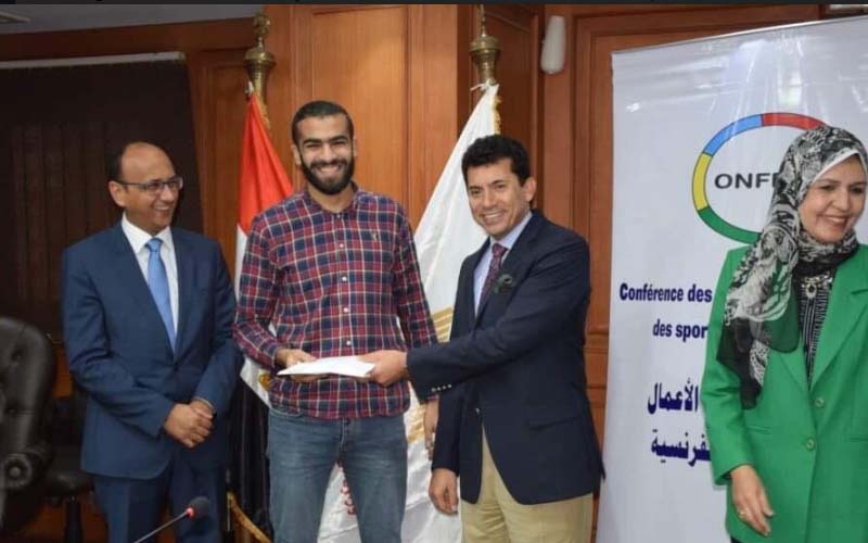 وزير الشباب والرياضة يسلم المنح المالية المقدمة من confejes للشباب الفائزين