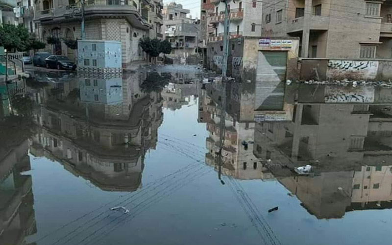 غرق شارع "فلسطين" ببلقاس بسبب كسر ماسورة مياه