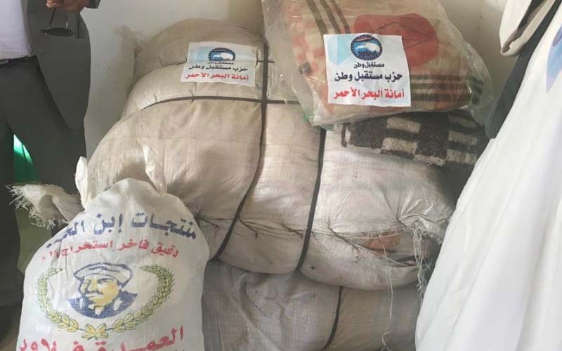 وجاء ذلك على رأس زيارة لوفد الحزب، في محافظة البحر الأحمر، عبد الرحيم كمال مساعد أمين التنظيم المركزي بالحزب، وعماد الدين سيف، أمين الحزب بالمحافظة، وأحمد الدقاق أمين التنظيم بالمحافظة وعبيد سالم الأمين العام المساعد للمحافظة، حيث اصطحب الوفد سيارة محملة بالبطاطين، والمواد الغذائية، لتوزيعها على الأهالي بالمدينة.