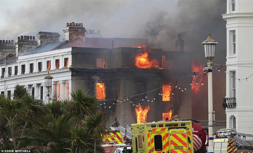 وقال شاهد عيان لصحيفة "إيستبورن هيرالد": "إن الحريق ضخم للغاية. لقد بدأت النيران في الجزء الخلفي من الفندق، والآن أصبحت واجهة الفندق بالكامل مشتعلة".