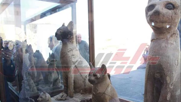 وأوضح وزير الآثار، انه ليس بصدد الإعلان عن كشف أثري جديد وإنما الإعلان عن متحف كامل؛ كما ان له الشرف للوقف ثلاث مرات في هذا المكان للإعلان عن كشف أثري جديد، حيث يضم كشف اليوم مجموعة ضخمة من 75 تمثالا من القطط المختلفة الأحجام والأشكال مصنوعة من الخشب والبرونز و25 صندوقا خشبيا بأغطية مزينة بكتابات هيروغليفية بداخلها مومياوات لقطط، وتماثيل من الخشب لحيوانات مختلفة منها النمس والعجل أبيس وتماسيح صغيرة الحجم بها بقايا تماسيح محنطة وللإله أنوبيس، ومومياءين لحيوان النمس، بالإضافة إلى العثور على جعران كبير الحجم مصنوع من الحجر، وجعارين اخرى صغيرة مصنوعة من الخشب والحجر الرملي عليها مناظر آلهة وتمثال من الخشب مميز الشكل لطائر أبو منجل ومجموعة اخرى من تماثيل لآلهة مصرية قديمة منها 73 تمثالا من البرونز للإله أوزير و6 تماثيل خشبية للإله بتاح سوكر و11 تمثالا للآلهة سخمت مصنوعة من الفيانس والخشب وكذلك تمثال جميل من الخشب للآلهة نيت.