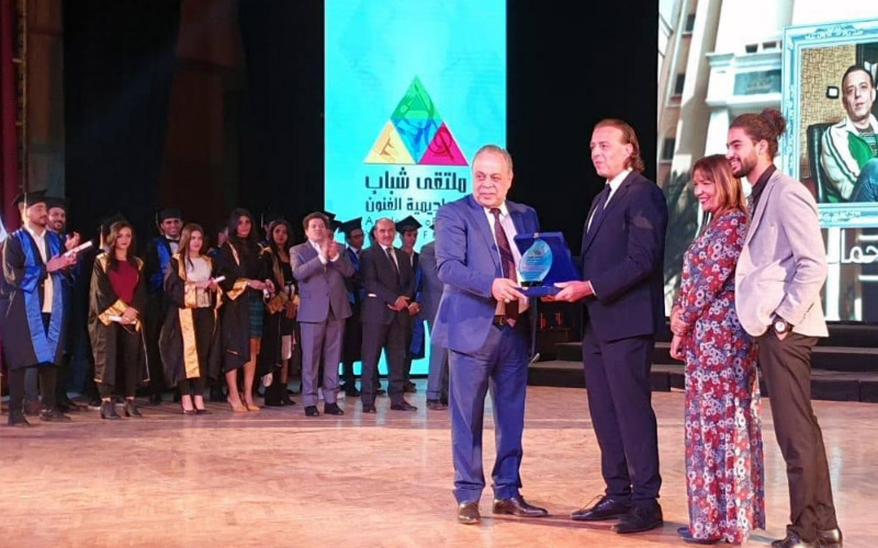 و قد تسلم درع التكريم من الدكتور أشرف زكي رئيس أكاديمية الفنون و الدكتورة غادة جبارة نائبة رئيس الأكاديمية