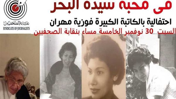 ويحمل الحفل عنوان "فى محبة فوزية مهران " وهى واحدة من جيل كتاب مصر العظام وإحدى رائدات العمل الصحفى حيث كانت ضمن مؤسسى مجلة صباح الخير مع نخبة من كبار كتاب مصر واحدى الكاتبات القليلات اللاتى حرصن على نشر الثقافة بالعمل على الأرض ضمن قوافل الثقافة الجماهيرية فى قرى مصر ونجوعها كما ارتبط اسمها بالكتابة عن البحر وهو عالمها المتفرد الذى برعت فى الكتابة عنه.. تدير الأمسية الكاتبة نفيسة عبد الفتاح .