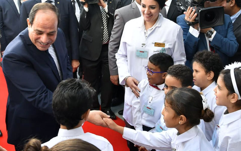 نشرت صفحة المتحدث الرسمي لرئاسة الجمهورية، على موقع التواصل الأجتماعى" فيسبوك"، عددًا من الصور يظهر خلالها الرئيس عبدالفتاح السيسي، يطلق من مدينة بورسعيد منظومة التأمين الصحي الشامل بمصر، ويقوم بتوزيع بعض الهدايا على الأطفال المرضى.