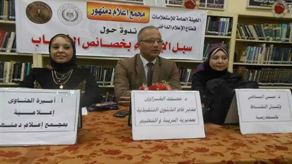 عقد مجمع اعلام دمنهور برئاسة عادل قميحة مدير المجمع ندوة اعلامية بعنوان "سبل الارتقاء بخصائص الشباب" وذلك بمدرسة الثانوية الزراعية بنين بدمنهور.