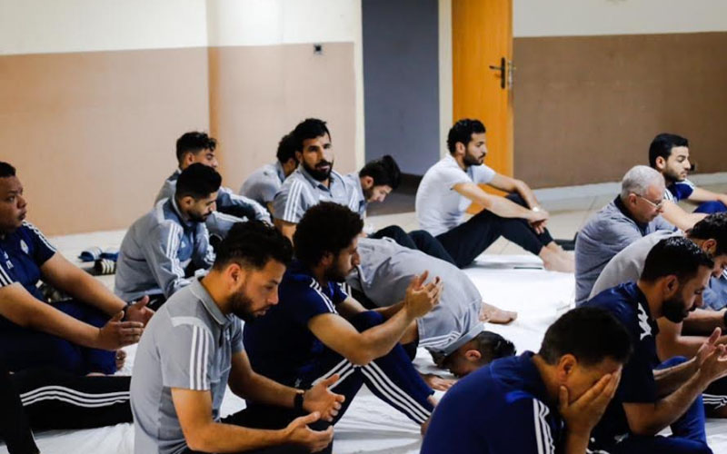 بالصور.. بعثة "بيراميدز" تصلي الجمعة بفندق الإقامة في نيجيريا