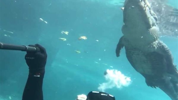 وقال كريستوفر على صفحته "إنستغرام": "أطلق الفقاعات عادة عندما يسبح (التمساح) فوقي وهذا يجعله في النزول إلى القاع ليلعب معي أحيانا وهذه المرة هبط عليّ".