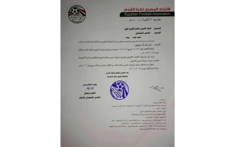 وصرح حسام الزناتي مدير المسابقات بالاتحاد بأن المواعيد الجديدة تم وضعها بالتنسيق مع الجهات الأمنية، مع نقل المباريات المهمة التي كانت تقام باستاد برج العرب إلى استاد المكس، واستمرار المصري للعب في السويس.