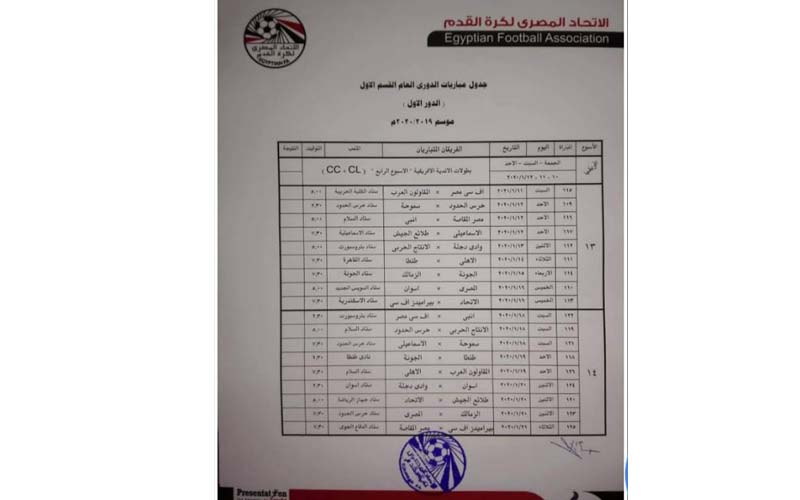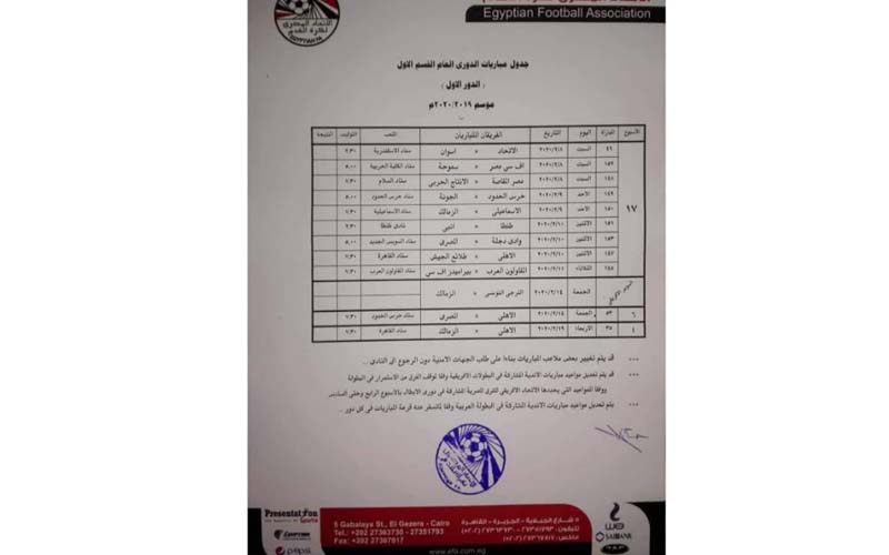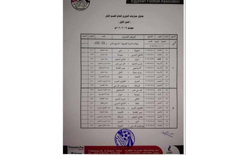 أعلنت إدارة المسابقات بالاتحاد المصري لكرة القدم جدول مسابقة الدوري الممتاز بدءا من الجولة السابعة.