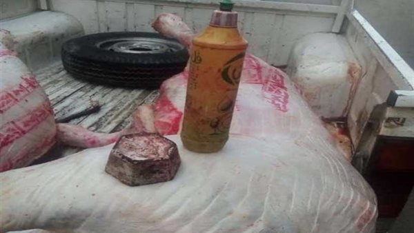 أسفرت عن ضبط عجلين كاملين بمنزل أحد المواطنين بإحدى القرى التابعة لمركز دمنهور مذبوحين خارج المجازر الحكومية وغير صالحين للاستهلاك الآدمى ، كما تم ضبط مادة ملونة مجهولة المصدر تستخدم فى ختم اللحوم وقطعة حديدية تستخدم كختم . وتم تحريز المضبوطات واتخاذ الإجراءات اللازمة لإعدامها واتخاذ كافة الإجراءات القانونية حيال المخالف.